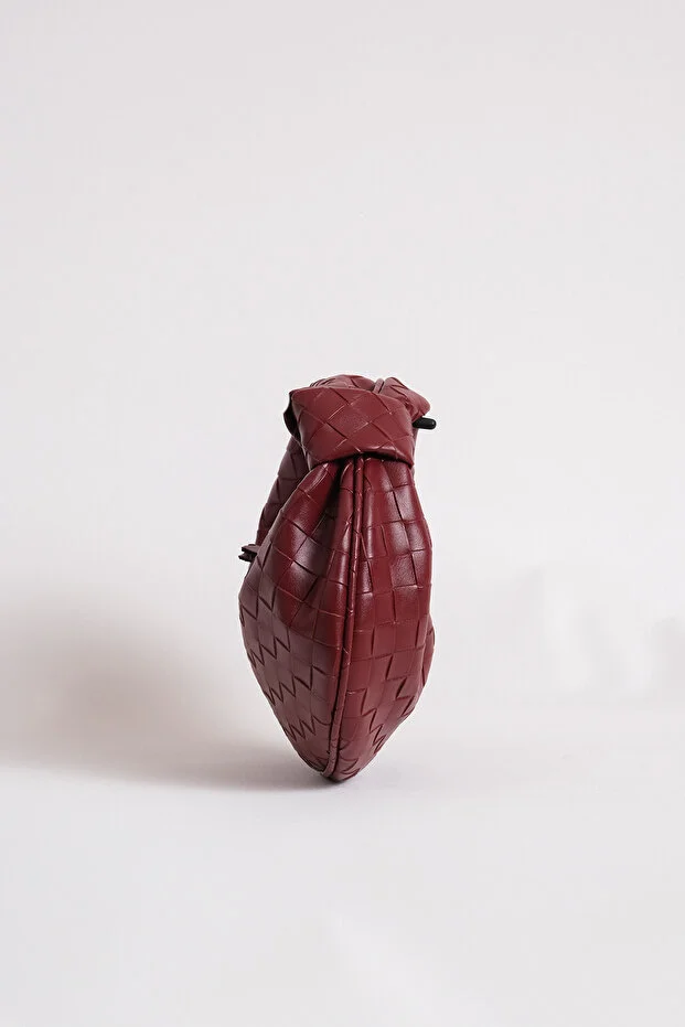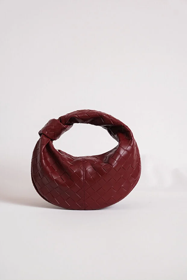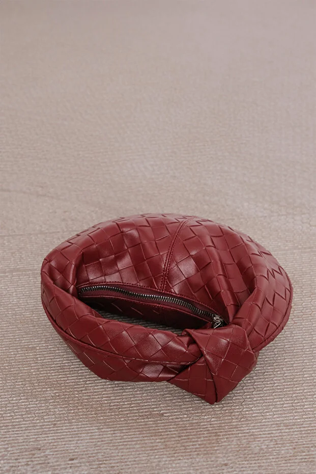 حقيبة يد نسائية مضفرة بالون الأحمر الداكن من جانتاجينستور