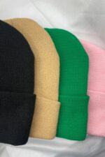 طقم قبعات صوف للجنسين من كيسشي 4 ألوان أسود جملي أخضر وردي